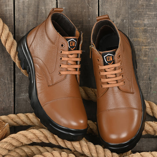 Dabang-3 Genuine Leather Wide Fit Service/ Security/ Police/ Administrative Official High Ankle Boots With Side Zipper Pl-7-TAN