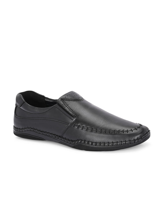 Eego Italy Genuine Leather Black Slip On Shoes