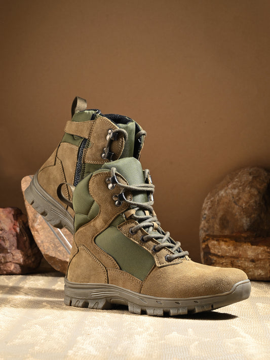 Eego Italy Genuine Leather Warrior Aerolite 7.0 Military & Tactical Combat Boot (Green) With Steel Toe Insert